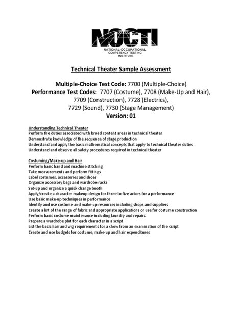 Online PDF TECHNICAL THEATER SAMPLE ASSESSMENT MULTIPLE CHOICE TEST NOCTI Reader ManyBooks